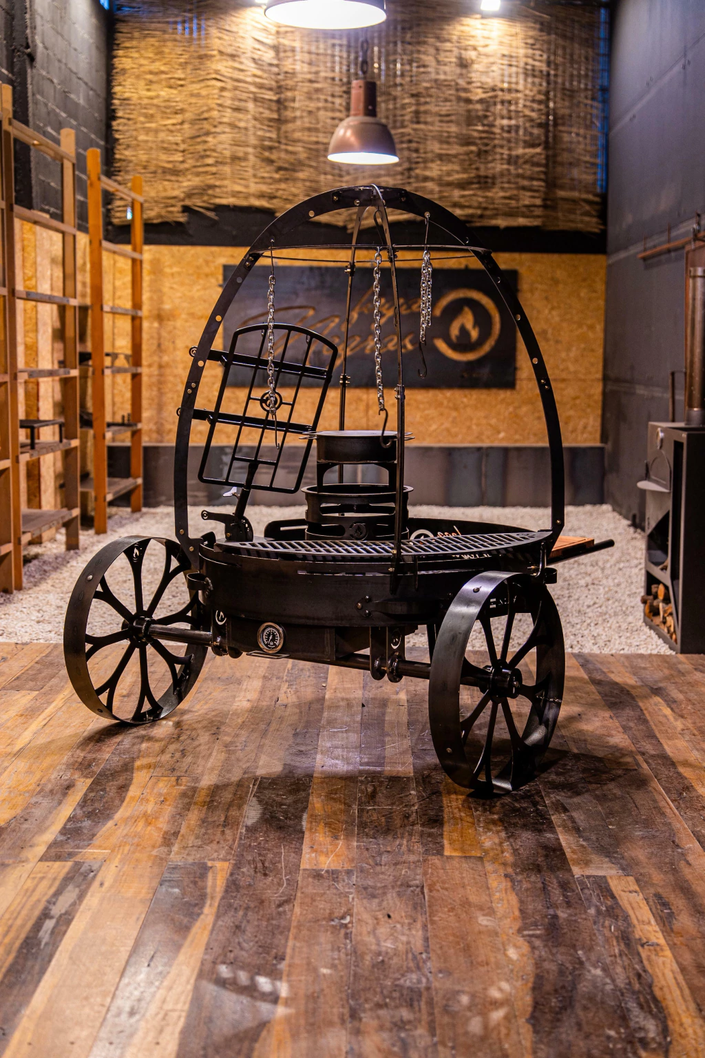 Los FogoNegros carros son una excelente opción para movilizar tu fogonero de un lugar a otro y permite girarlo fácilmente para poder adaptarse a los cambios de viento en el momento de la cocción.