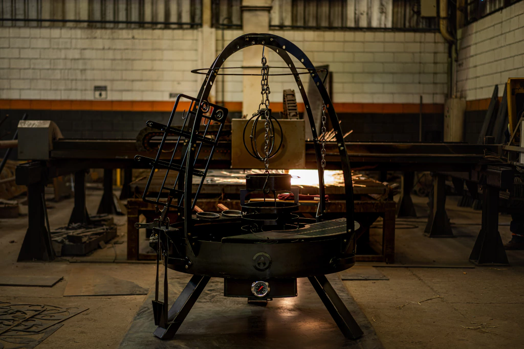 La jaula con ganchos y cadenas, es una estructura que se posiciona sobre el fogonero, el objetivo principal es aumentar la capacidad de cocción del fogonero aprovechando al maximo la temperatura que el mismo genera por la combustion de la leña. En la jaula, se pueden colgar todo tipo de alimentos para cocinar al gancho.